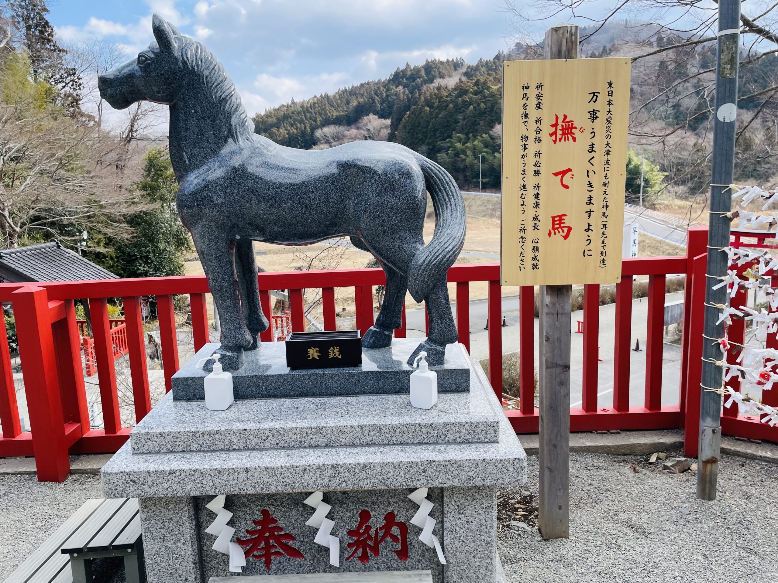 ■ 「すべて馬く行く」撫で馬にリハビリの願いを 境内には、自分の体の気になるところを擦ると良くなると言われる「撫で馬」の石像があります。 私の場合、脳のダメージで左半身が動かしにくいため、石像の頭と左半身を念入りになでなでしてきました。